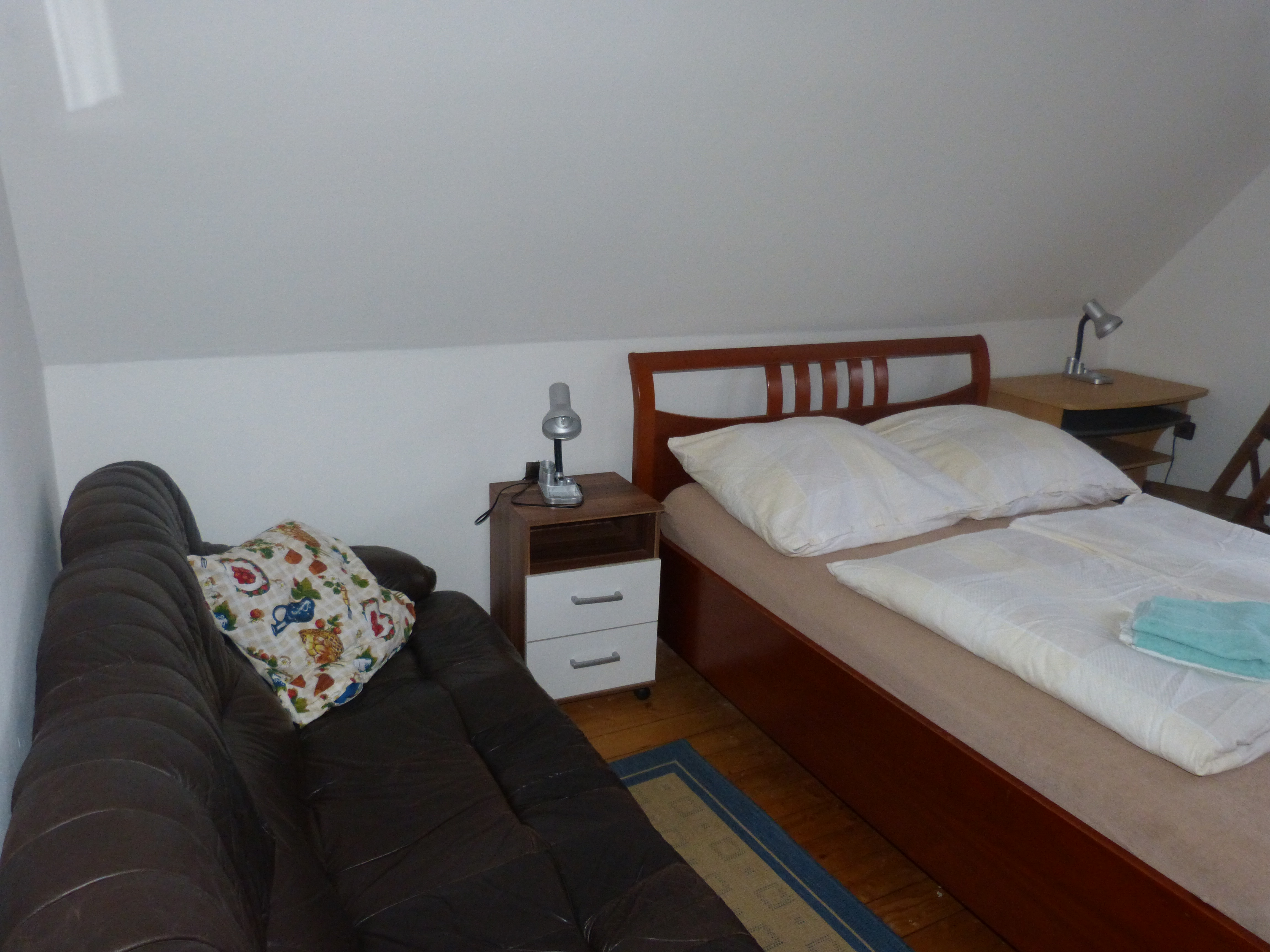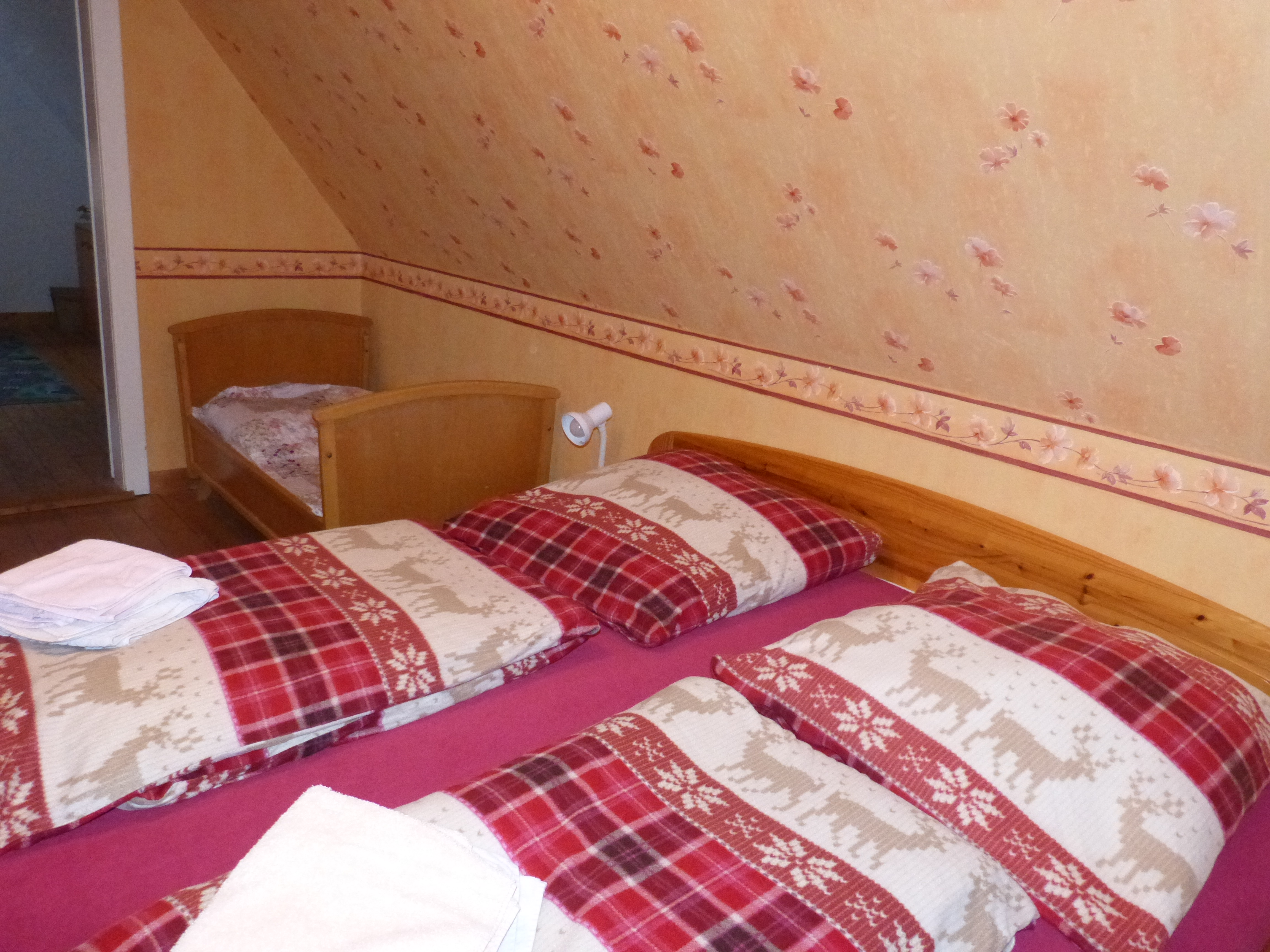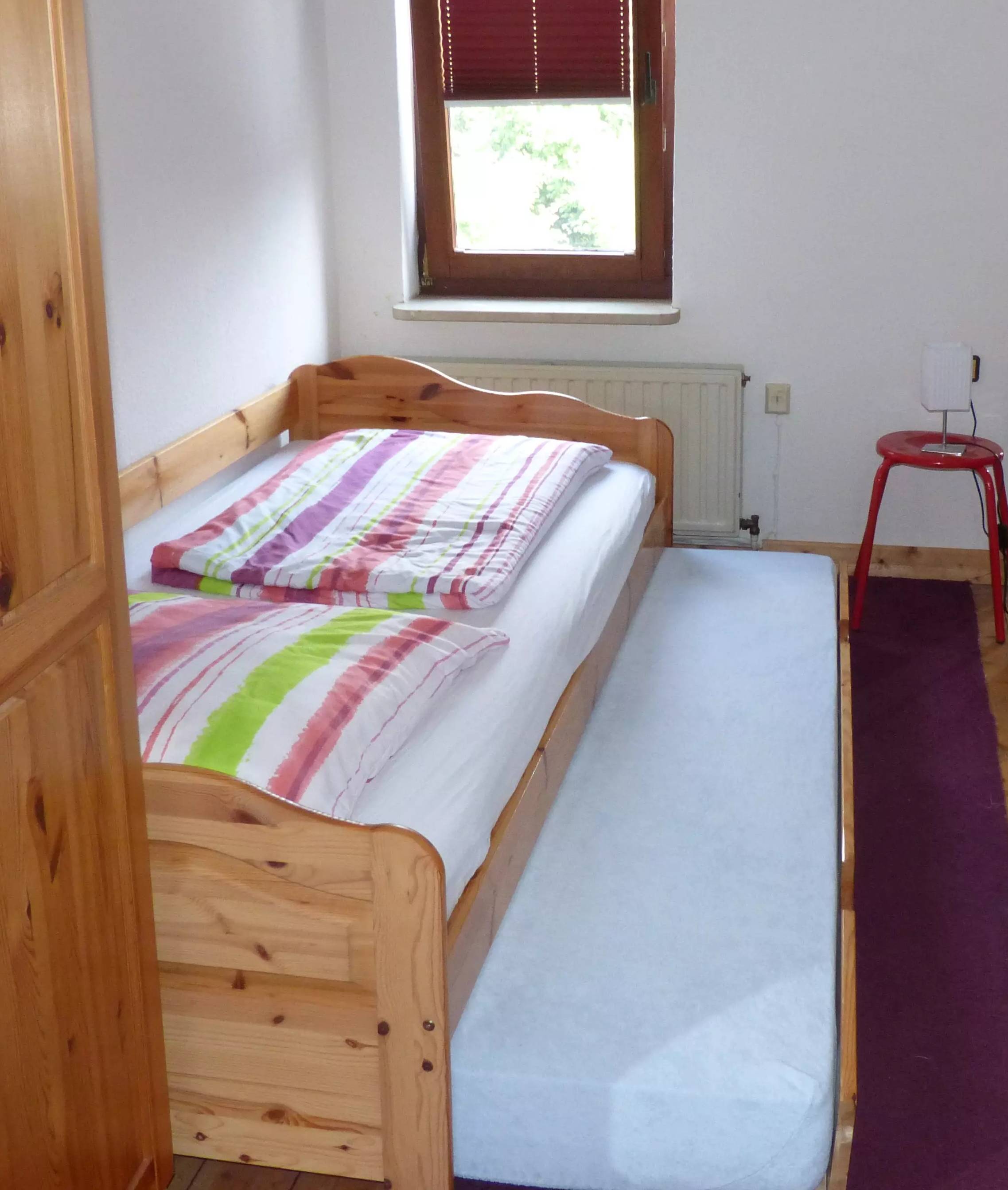 38.) Schlafzimmer 3 mit zur Hälfte ausgezogenem zweitem Bett.